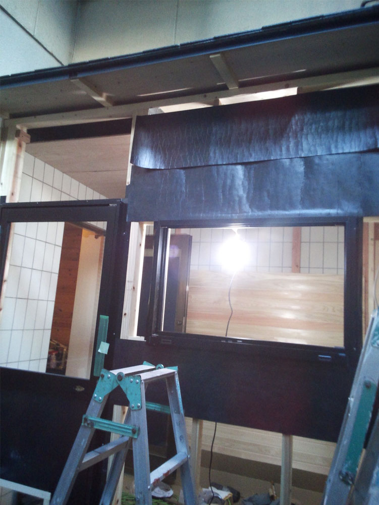 | 2012年3月25日 ネットショップでドアと窓のサッシを購入しました。 窓枠には防水シートと防水テープで周りを覆うそうで、 あわせて注文しました。 |