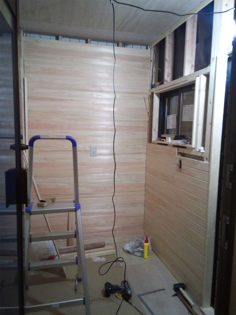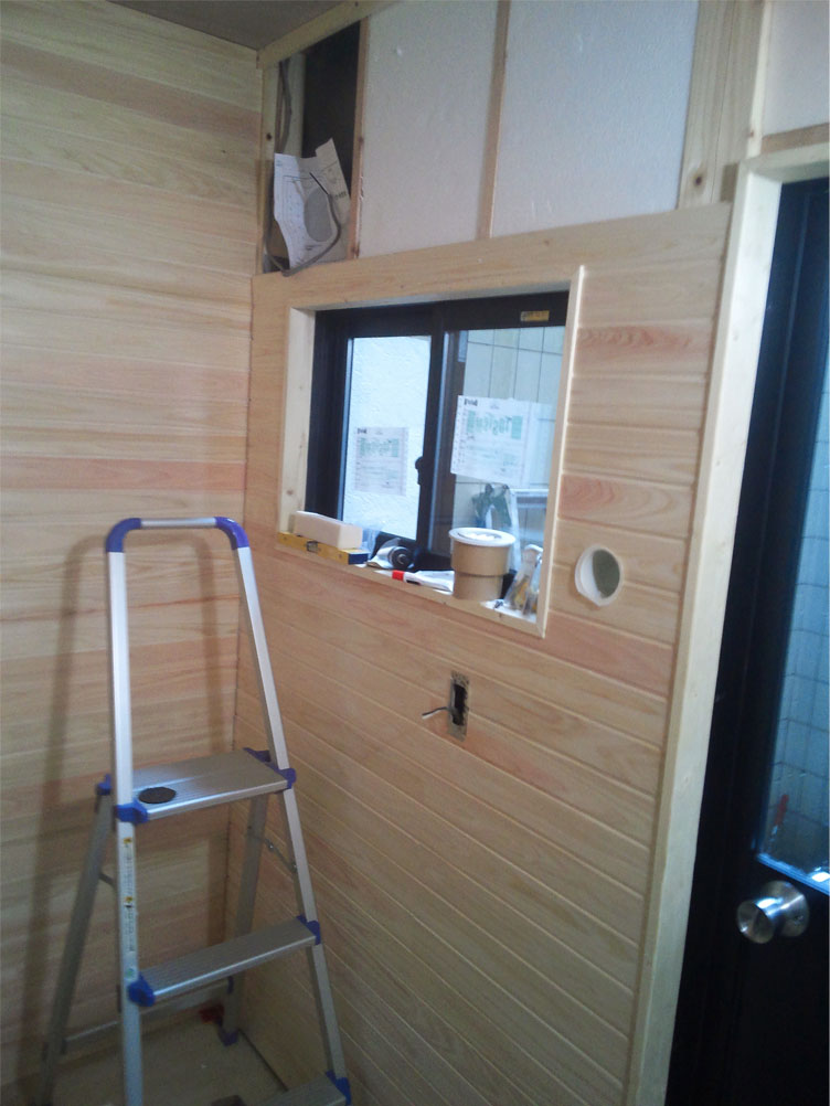 | 2012年4月4日 大まかに計算していたので羽目板が足りません。 思ったよりも接合部分のロスがあります。 マルウメ梅江製材所さんに発注します。 良心的なお店で2日~4日で届きます。 |