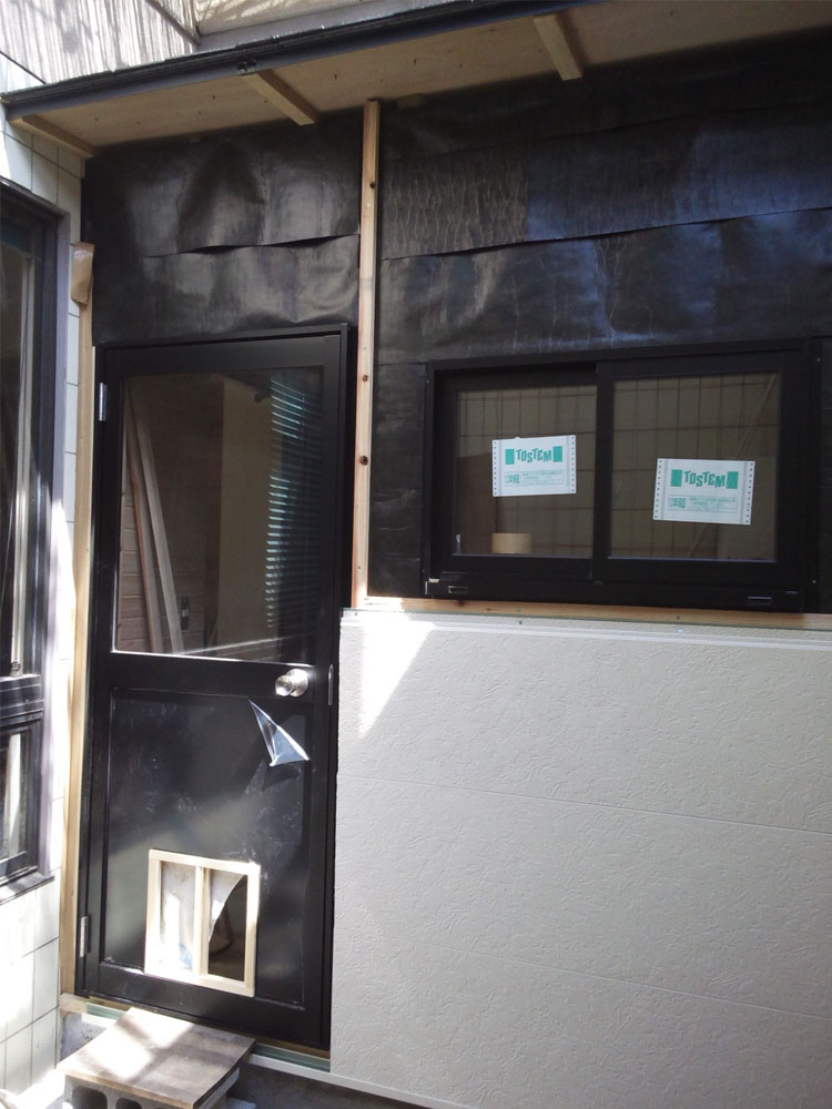 | 2012年4月7日 材料が届いたので 断熱材を入れながら張り進めます。 単純な作業ですが、形になっていくと楽しいー (^v^) ゴムの金槌?を買ったので隠し釘を打つのも 音があまり出ず、9時ごろまで作業できます。 |